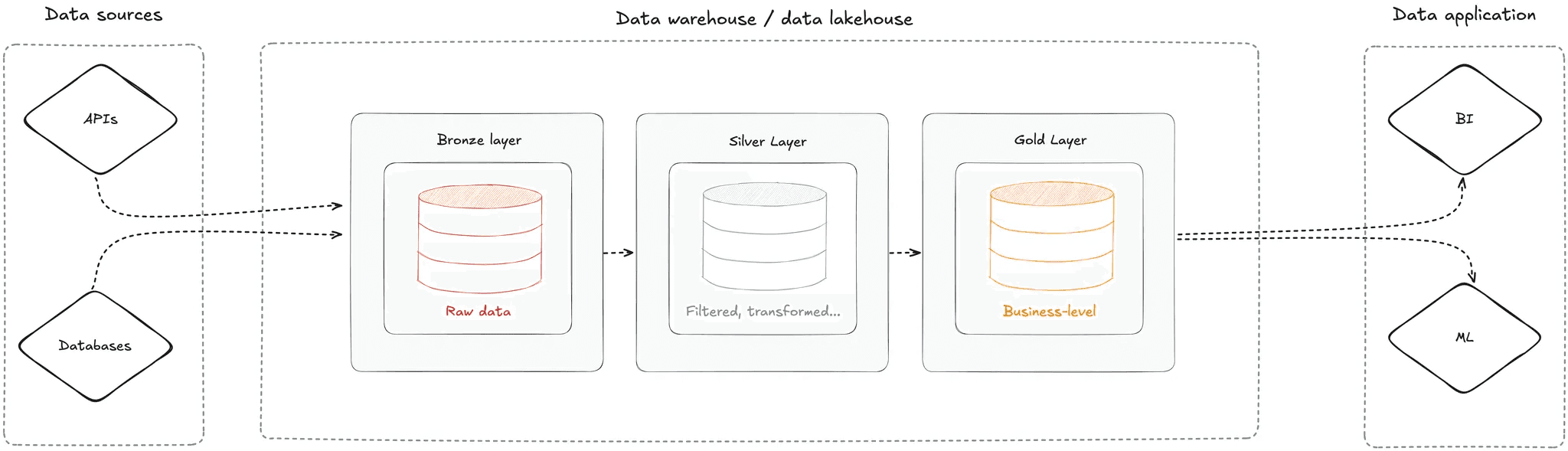 Esse modelo foi popularizado pela Databricks e hoje é considerado uma boa prática essencial em arquiteturas modernas de dados.