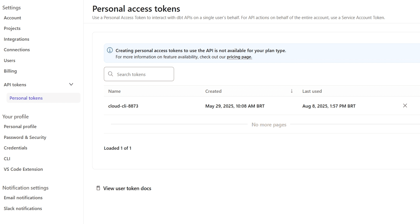 Gerando Personal Token do dbt Cloud